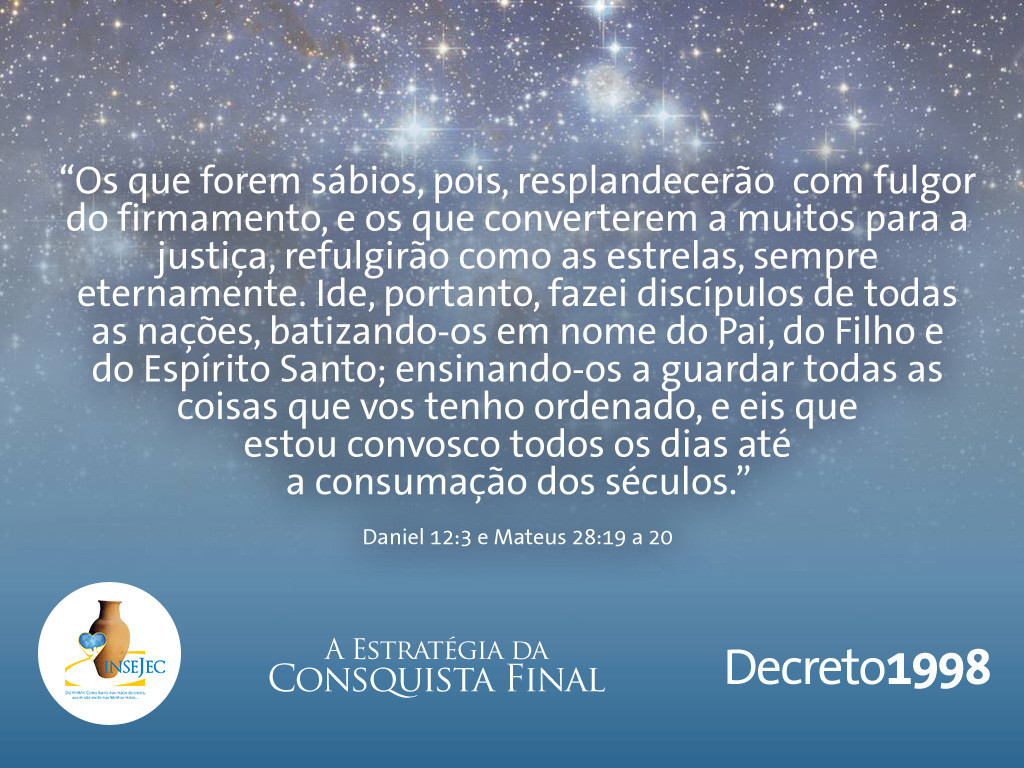 Um decreto é “uma palavra com força de lei, proferida por quem tem autoridade para fazê-lo, a fim de ser estabelecida pela obediência”. Assim, ano após ano, Deus nos concede uma palavra específica, profetizada diariamente nos céus desta nação e além, com a certeza de que nenhuma delas retornará vazia, mas cumprirá seu propósito.